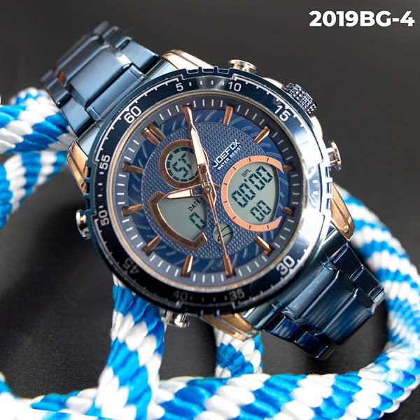 RELOJ JOEFOX METÁLICO DOBLE HORA AZUL HOMBRE 2019BG-4