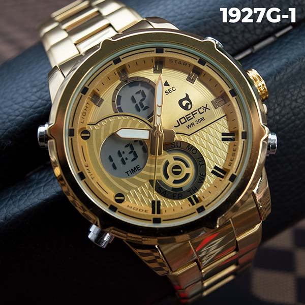RELOJ JOEFOX METÁLICO DOBLE HORA DORADO HOMBRE 1927G-1