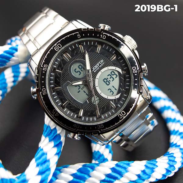 RELOJ JOEFOX METÁLICO DOBLE HORA PLATEADO HOMBRE 2019BG-1
