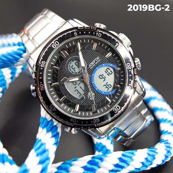 RELOJ JOEFOX METÁLICO DOBLE HORA PLATEADO HOMBRE 2019BG-2