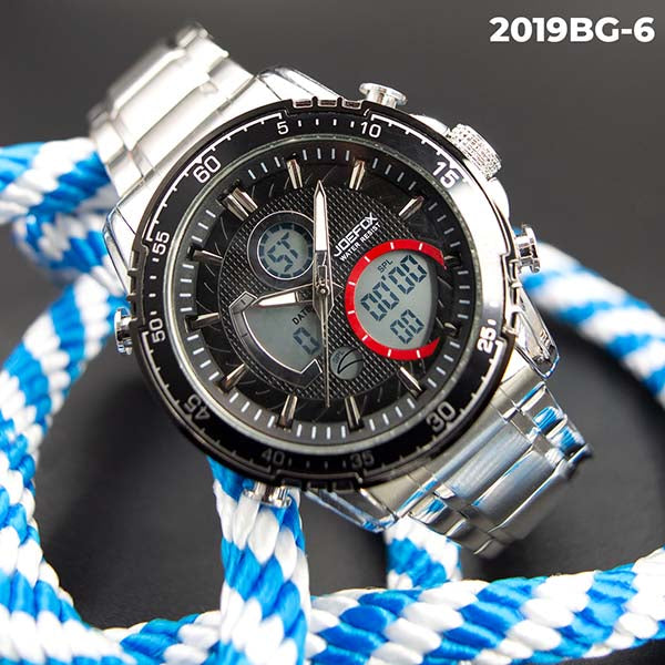 RELOJ JOEFOX METÁLICO DOBLE HORA PLATEADO HOMBRE 2019BG-6