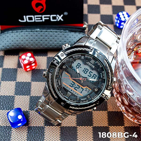 RELOJ JOEFOX METALICO PLATEADO NEGRO HOMBRE 1808BG-4