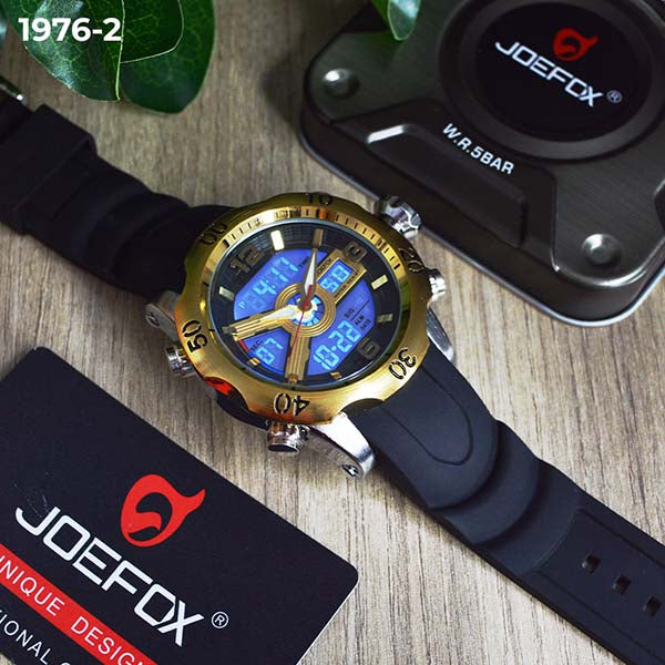 RELOJ JOEFOX NEGRO/DORADO/TABLERO NEGRO DOBLE/HORA HOMBRE 1976-2