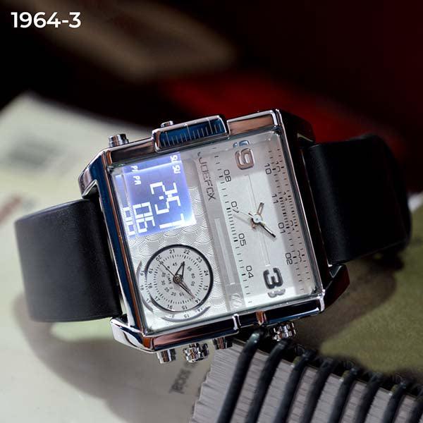 RELOJ JOEFOX NEGRO/PLATA DOBLE/HORA HOMBRE 1964-3