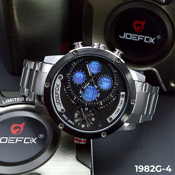 RELOJ JOEFOX PLATA/NEGRO DOBLE/HORA HOMBRE 1982G-4