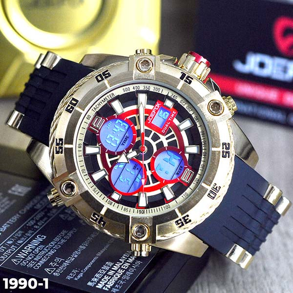 RELOJ JOEFOX TIPO INVICTA ANA-DIG DEPORTIVO NEGRO-DORADO-ROJO HOMBRE 1990-1